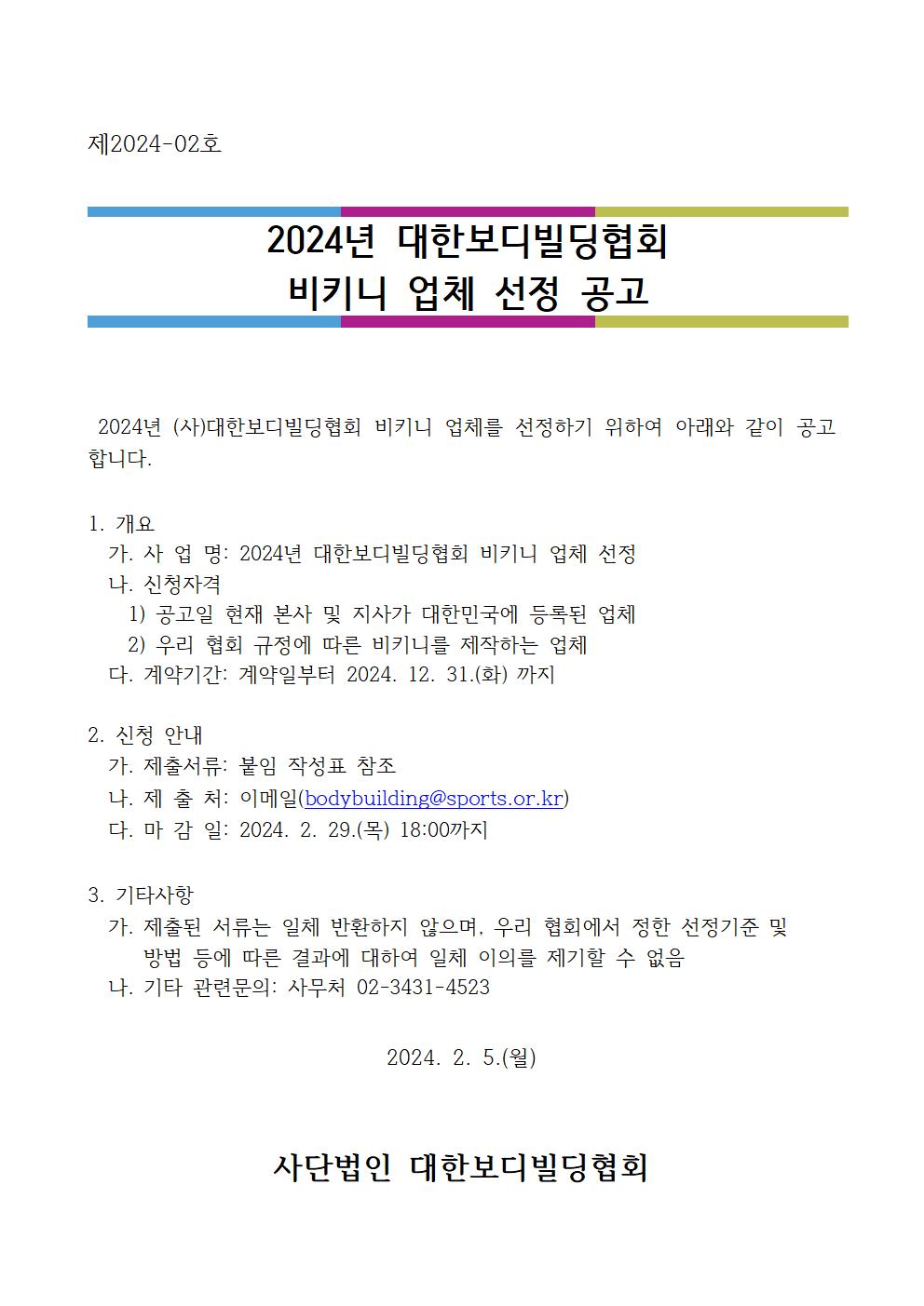 2. 2024년 대한보디빌딩협회 대회 비키니 업체 선정 공고문.hwp